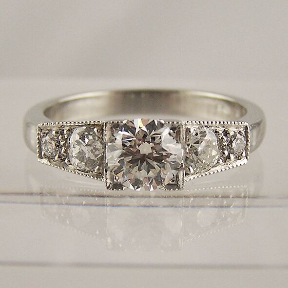 To add to the vintage style the box claws of the centre stone & the shoulder stones have a milgrain edge detail.