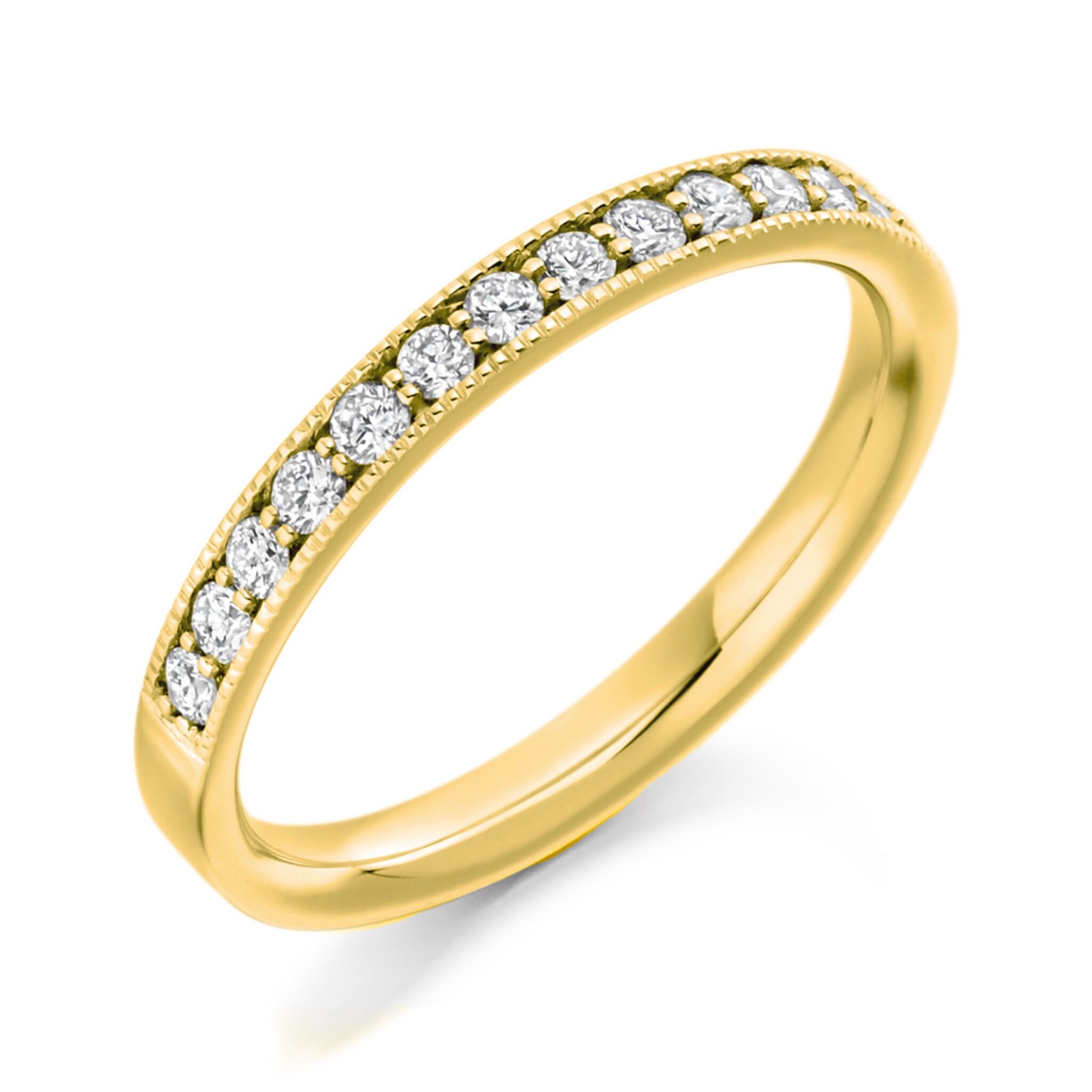 Páve milgrain set Diamond wedding ring. This intricate design particularly compliments vintage style engagement rings but it can be worn with more modern rings too.