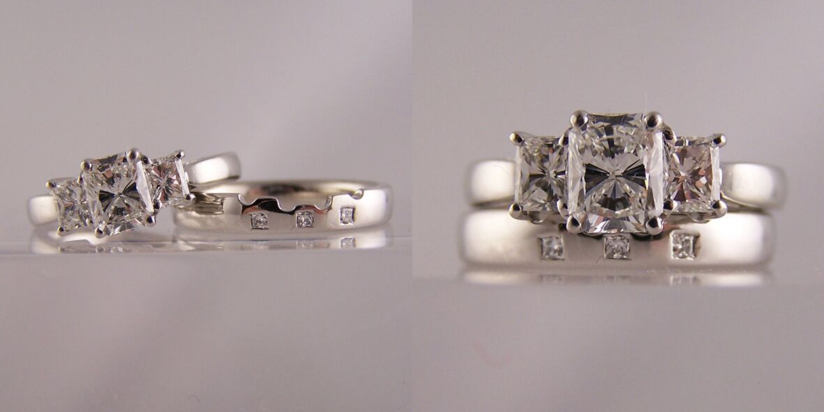 At RING jewellers we will borrow your engagement ring, make a wax model of it, and then create an exact version of it as a final ring in any of the precious metal variations that match your engagement ring. This not only looks much more elegant than a ring straight from a shop window, but it will also protect your engagement ring.